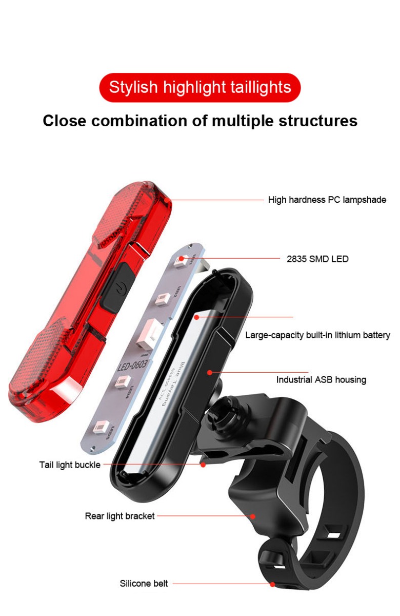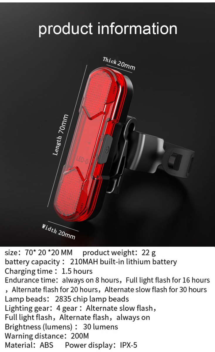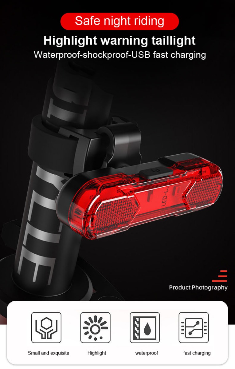 Fahrrad-Rücklicht, wasserdichtes MTB-Fahrradlicht, Warnung Fahrrad-Rücklicht, USB wiederaufladbar