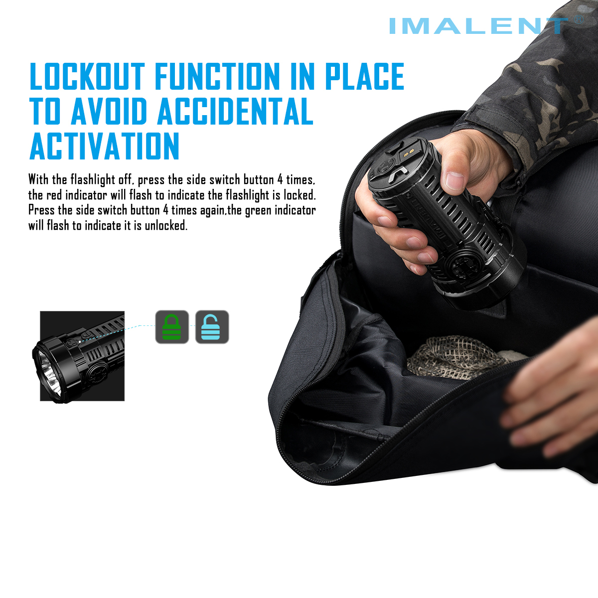 IMALENT RS50 ist eine wiederaufladbare LED-Suchlampe mit einer kompakten Größe, die eine maximale Leistung von 20.000 Lumen und eine maximale Strahlentfernung von 1160 Metern liefert. Die Lichtmenge, die die IMALENT RS50-Taschenlampe abgibt, ist wirklich bemerkenswert, ein breiter Abstrahlwinkel und eine Strobe-Funktion sind mit acht amerikanischen CREE XHP50.3 HI-LEDs ideal für Suche und Rettung.