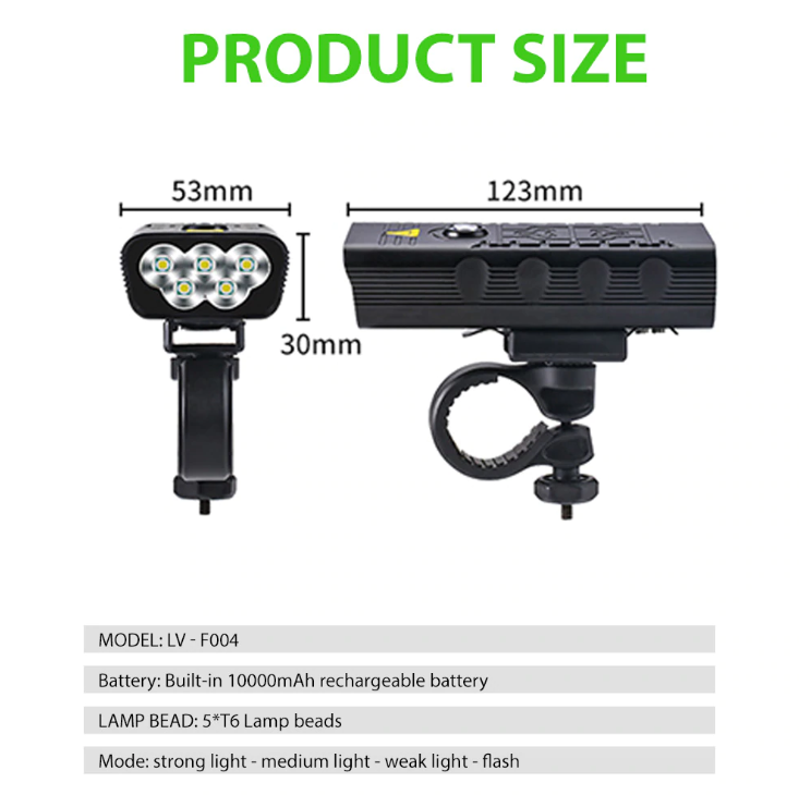 10000 mAh 5000 Lumen 5T6 LED Wiederaufladbare Fahrradscheinwerfer Fahrradfrontlichter und Rücklicht
