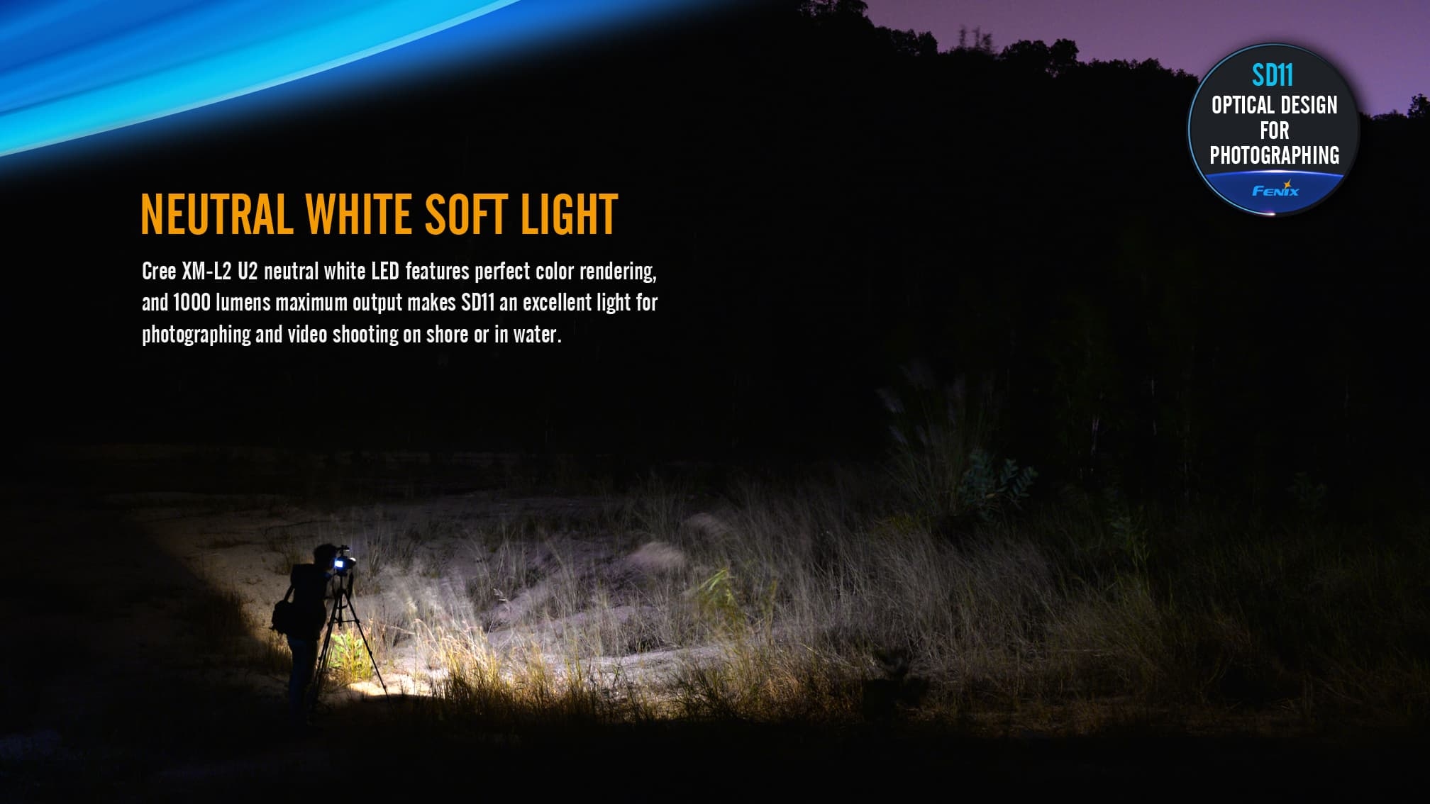Fenix SD11 Tauch- und Fototaschenlampe, max. 1000 Lumen, Cree XM-L2 U2 Neutralweiße LED und Cree XQE Rote LED, mit 3500mAh 18650 Batterie