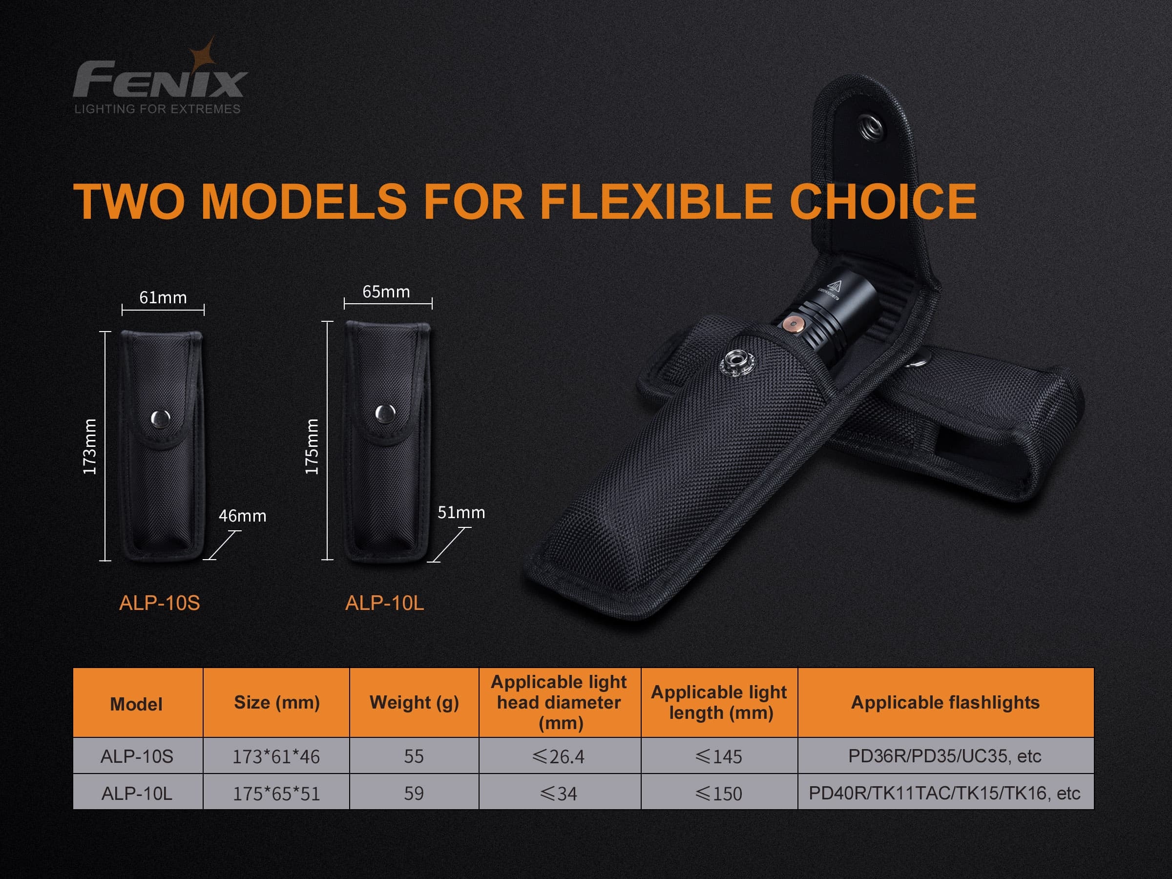 Das Fenix ALP-10 ist ein Holster, das speziell zum Verpacken und Schützen von Taschenlampen entwickelt wurde. Die Verwendung von reißfestem Nylonmaterial zeichnet sich durch eine hervorragende Abriebfestigkeit aus. Es werden drei Schichten aus verschiedenen Materialien verwendet, mit einmaliger Heißpressung, die stilvoll und langlebig ist; Das hintere Gurtband ist mit einer Kombination aus Klettverschluss und vernickeltem Metallknopf ausgestattet, um eine starke Stabilität und Schnellverschlussfähigkeit zu gewährleisten. Das Holster lässt sich perfekt mit Gürtel, Rucksack und mehr kombinieren. Auf diese Weise ist die Taschenlampe in einer Vielzahl von Szenarien wie Strafverfolgung, Außenbeleuchtung, Suche und Rettung usw. vollständig geschützt.